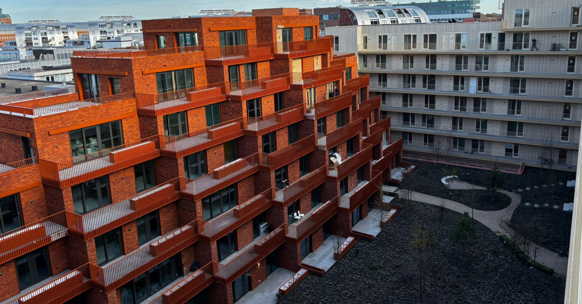 PALAZZO een woonblok met 233 woningen en een open, groene binnentuin op een prachtige locatie met uitzicht op een groot openbaar plein en een prachtige vijver.
